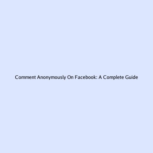 Comment Anonymously On Facebook: A Complete Guide