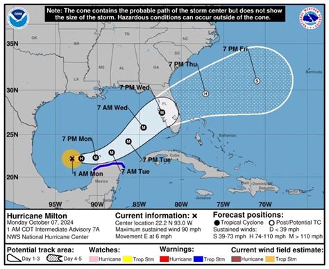 Now, let’s say Hurricane Milton started gaining strength in the Atlantic. As it intensified, meteorologists would have started tracking its every move. They use a bunch of tools, like satellites and weather stations, to gather data about the storm’s wind speed, pressure, and the size of the storm. This information is crucial for predicting where it will go and how strong it will get. The hurricane Milton path map comes into play here, using data to estimate the hurricane’s track. Meteorologists create a path map that shows the predicted path of the hurricane’s center over time. The map includes a cone of uncertainty, which indicates the range of possible paths. The cone of uncertainty is based on the accuracy of the forecast models and the historical performance of the models. The wider the cone, the greater the uncertainty about the hurricane’s exact path. As the hurricane approaches land, the cone of uncertainty will often shrink as more data becomes available, allowing for more precise predictions. The path map is updated regularly, especially as new data comes in. The National Hurricane Center (NHC) is the primary source for hurricane forecasts and warnings in the United States. The NHC’s forecasts are widely distributed through various media outlets, including television, radio, and the internet. Local emergency management agencies also provide information and guidance to the public. As Milton grew in power, the anticipation in Florida would’ve started. People would begin preparing their homes, stocking up on supplies, and monitoring the hurricane Milton path map updates.