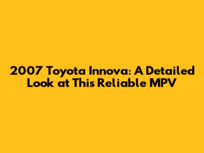 Hey everyone, let's dive deep into the 2007 Toyota Innova! If you're in the market for a dependable and spacious Multi-Purpose Vehicle (MPV), this might just be the ride for you. Toyota has a solid reputation for building cars that last, and the Innova is a prime example of that. We're going to break down everything you need to know, from its impressive features to its practical specifications, so you can make an informed decision. Whether you're a family looking for more room, a business needing a versatile vehicle, or just someone who appreciates a well-built car, the 2007 Innova deserves a closer look. We'll cover the different trims, engine options, interior comfort, safety features, and what makes it a great used car buy. So, buckle up, guys, and let's get started on exploring this popular MPV!