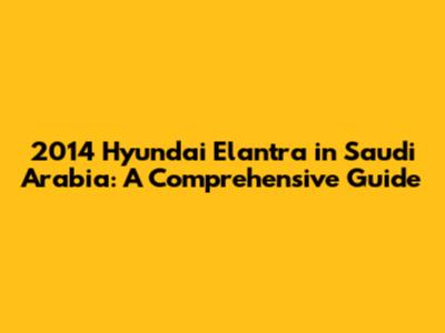 2014 Hyundai Elantra In Saudi Arabia: A Comprehensive Guide