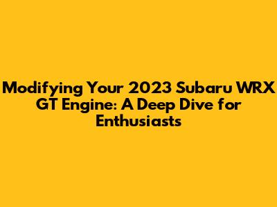 Hey, fellow car lovers! So, you've got yourself a sweet 2023 Subaru WRX GT and you're thinking, "Can I tweak this bad boy? Can you modify the 2023 Subaru WRX GT engine?" The short answer is a resounding yes, you absolutely can! The WRX platform has always been a tuner's dream, and the latest generation is no exception. But before you go grabbing your wrenches, let's get into the nitty-gritty of what's involved, what's possible, and what you should be aware of. We're talking about making your already awesome WRX GT even more of a beast. Think more horsepower, better throttle response, and that signature Subaru rumble, but dialed up to eleven. It’s not just about slapping on a few parts; it’s a journey of understanding your car, its capabilities, and how to push them responsibly. This article is your go-to guide, your cheat sheet, your friendly chat about unlocking the full potential of that turbocharged FA24 engine. We'll cover everything from simple bolt-ons to more involved upgrades, all while keeping an eye on reliability and legality. So buckle up, grab a coffee, and let's explore the exciting world of WRX GT engine modification!