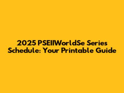 2025 PSEIIWorldSe Series Schedule: Printable & Ready!