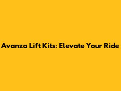 Avanza Lift Kits: Elevate Your Ride