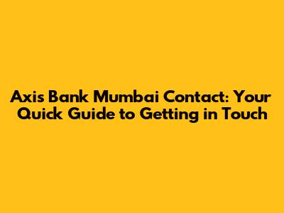 Axis Bank Mumbai Contact: Get In Touch Easily