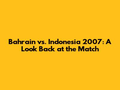 Bahrain Vs. Indonesia 2007: A Look Back At The Match