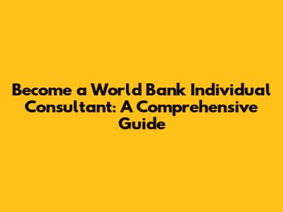 Hey there, future World Bank consultants! Ever dreamt of working on impactful projects that shape the world? Well, becoming an individual consultant for the World Bank might just be your golden ticket. This guide dives deep into everything you need to know, from understanding the role to landing that coveted contract. We'll cover the essentials, break down the application process, and offer some insider tips to boost your chances. So, grab your coffee, settle in, and let's get started on your journey to becoming a World Bank consultant!