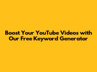 Boost Your YouTube Videos With Our Free Keyword Generator