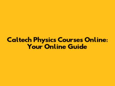 Caltech Physics Courses: Your Online Guide