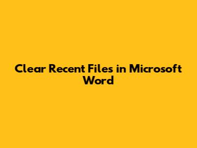 Clear Recent Files In Microsoft Word