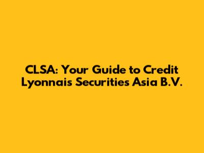 CLSA: Your Guide To Credit Lyonnais Securities Asia B.V.