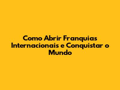 Como Abrir Franquias Internacionais E Conquistar O Mundo