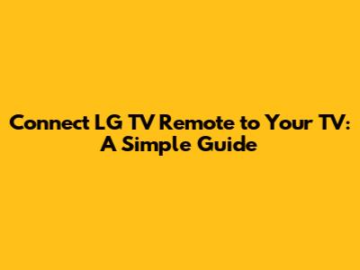 Connect LG TV Remote To Your TV: A Simple Guide