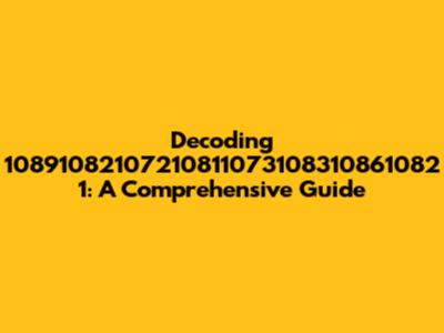 Decoding 10891082107210811073108310861082 1: A Comprehensive Guide