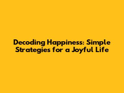 Decoding Happiness: Simple Strategies For A Joyful Life