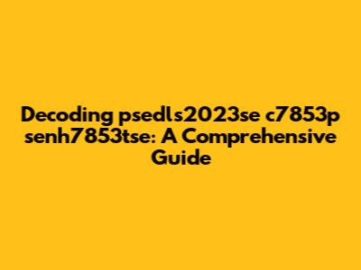 Decoding Psedls2023se C7853p Senh7853tse: A Comprehensive Guide