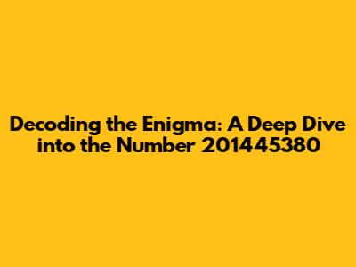 Decoding The Enigma: A Deep Dive Into The Number 201445380