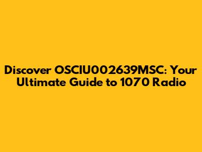 Discover OSCIU002639MSC: Your Ultimate Guide To 1070 Radio