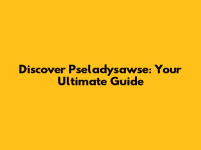 Discover Pseladysawse: Your Ultimate Guide
