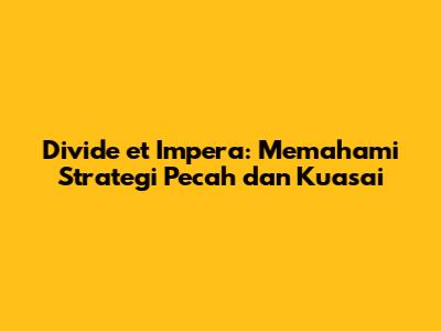 Divide et Impera, sebuah frasa Latin yang menggema sepanjang sejarah, merupakan lebih dari sekadar kata-kata. Ia adalah strategi politik dan militer yang ampuh yang bertujuan untuk mencapai kekuasaan dengan cara memecah belah lawan. Dalam bahasa Indonesia, strategi ini sering kali diterjemahkan menjadi "pecah dan kuasai". Konsepnya sederhana namun sangat efektif: jika Anda tidak dapat mengalahkan musuh Anda secara langsung, buatlah mereka saling bertikai, melemahkan diri mereka sendiri, dan kemudian, dengan mudah, kuasailah mereka.