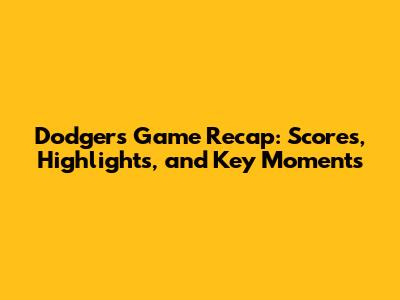 Dodgers Game Recap: Scores, Highlights, And Key Moments