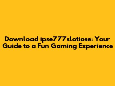 Download Ipse777slotiose: Your Guide To A Fun Gaming Experience
