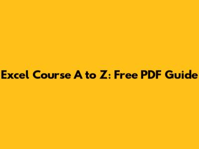 Excel Course A To Z: Free PDF Guide
