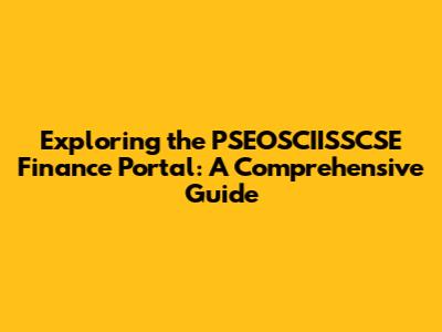 What is the PSEOSCIISSCSE Finance Portal? Understanding the Basics