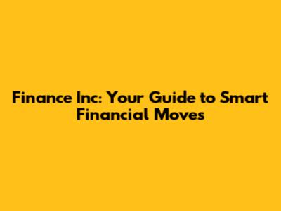 Finance Inc: Your Guide To Smart Financial Moves