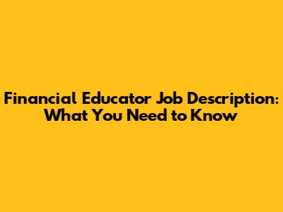 Financial Educator Job Description: What You Need To Know
