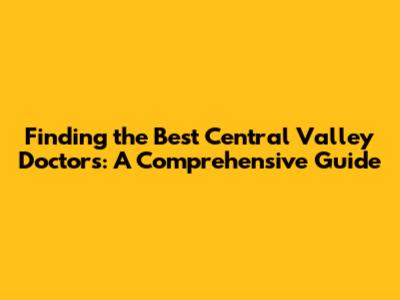 Finding The Best Central Valley Doctors: A Comprehensive Guide