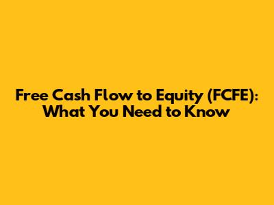 Free Cash Flow To Equity (FCFE): What You Need To Know
