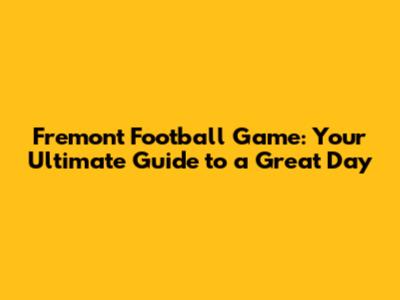 Fremont Football Game: Everything You Need To Know