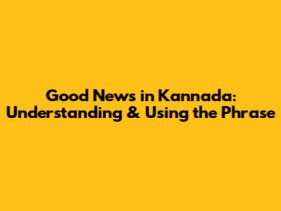 Good News In Kannada: Understanding & Using The Phrase