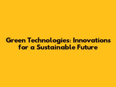 Green Technologies: Innovations For A Sustainable Future