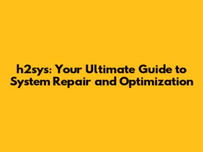 H2sys: Your Ultimate Guide To System Repair And Optimization