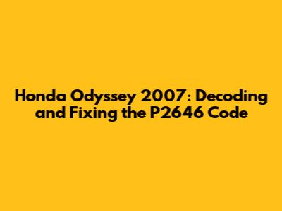 Hey guys! Ever had that annoying check engine light pop up on your Honda Odyssey, and after scanning, you're faced with a P2646 code? Don't worry; you're not alone! This code can be a bit tricky, but with a systematic approach, you can diagnose and fix it. Let's dive deep into what the P2646 code means for your 2007 Honda Odyssey and how to tackle it.