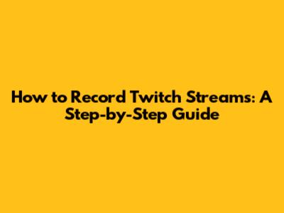 How To Record Twitch Streams: A Step-by-Step Guide