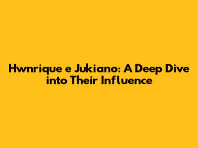 Hwnrique E Jukiano: A Deep Dive Into Their Influence