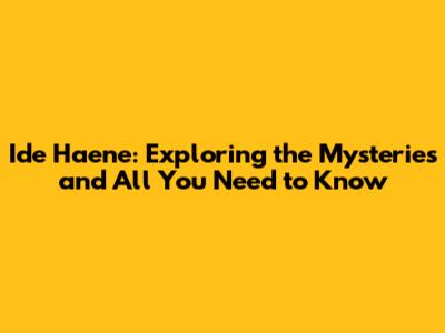 Ide Haene: Exploring The Mysteries And All You Need To Know