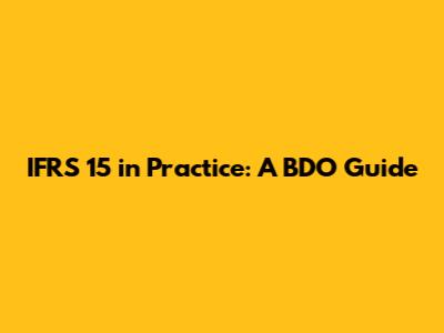 IFRS 15 In Practice: A BDO Guide