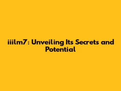 Iiilm7: Unveiling Its Secrets And Potential
