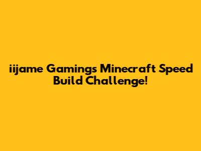 What's up, gamers! Today, we're diving headfirst into the electrifying world of iijame gaming and their epic live stream Minecraft speed build challenge. If you're a fan of creative building, fast-paced gameplay, and maybe a little bit of friendly competition, then you've come to the right place, guys! We're talking about taking Minecraft, a game already bursting with endless possibilities, and then cranking up the intensity with a speed build challenge. Imagine this: a ticking clock, a theme, and a whole lot of blocks. The goal? To create something amazing in the shortest amount of time possible. It’s a test of skill, strategy, and sometimes, pure luck! iijame gaming really knows how to bring the hype, and these challenges are no exception. They've built a community around their streams, and when they announce a speed build event, you know it's going to be a blast.
