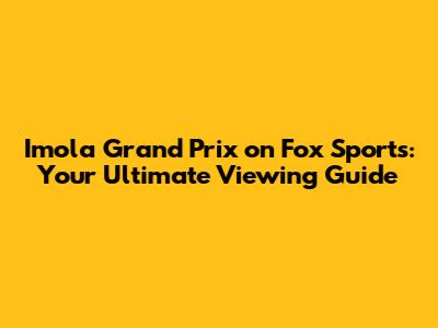 Imola GP On Fox Sports: Your Ultimate Viewing Guide