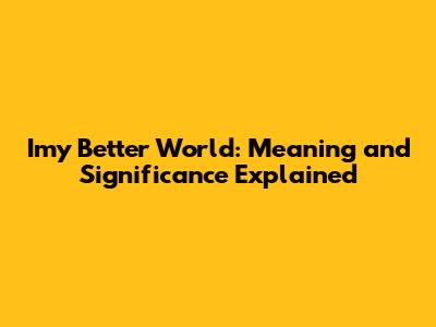 Imy Better World: Meaning And Significance Explained