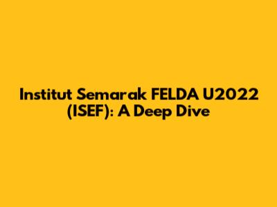 Let's dive deep into the Institut Semarak FELDA U2022, or ISEF as it's commonly known! We'll explore what it is, its goals, significance, and all the essential details you need to know. So, buckle up and get ready for an informative journey!