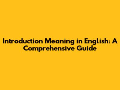 Introduction Meaning In English: A Comprehensive Guide
