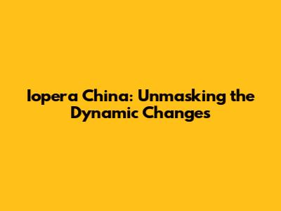 Iopera China: Unmasking The Dynamic Changes