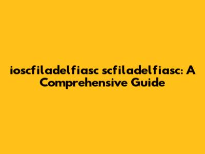 Ioscfiladelfiasc Scfiladelfiasc: A Comprehensive Guide