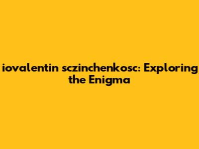 Iovalentin Sczinchenkosc: Exploring The Enigma