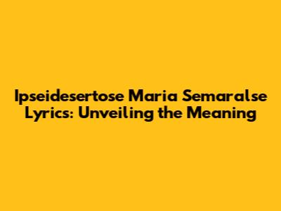 Ipseidesertose Maria Semaralse Lyrics: A Deep Dive